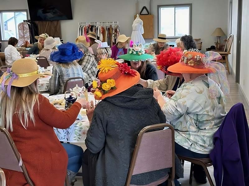 A great group of ladies young and old went to a fun event in New Meadows, Saturday, April 6. It was an afternoon tea with a spring hat contest and fashion show included! Ann Rehm coordinated the whole thing and Betsy Ogden emceed. Beautiful clothing and accessories were supplied by the Community House Thrift Store and made available for sale afterward. Tickets were sold ahead of time and all proceeds were given to the Community Center where the shindig was held. I heard through the grapevine that it was “a topnotch social event” and “everyone had a smashing good time!”