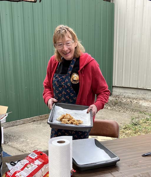 Carol Toothman mentioned that some people from Fruitland saw the sign out by the highway and came in to check it out. The weather was fine for cooking outside and the hall is always a very welcoming place to have an indoor event.