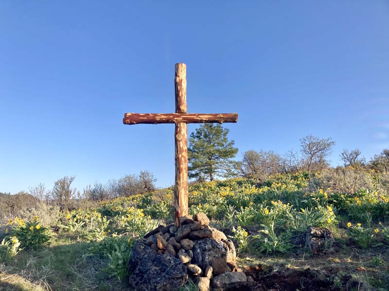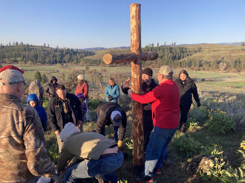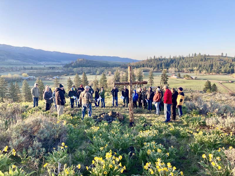 At 7:00 a.m. Easter morning, around 30 people from all different church congregations, gathered together for a sunrise service held in front of the cross on Fisk Hill, just outside of Fruitvale. It was a chilly but beautiful morning with clear skies. Pastor Wayne Freedman and Pastor Les Sheneberger from the Community church led everyone in singing “In Christ Alone” and “You Are My King”. Then Pastor Amy Schultz from the Nazarene church prayed and Freedman invited everyone to share how they have experienced the resurrection of Christ this past year. A few people shared, then Freedman shared a story about the cross the congregation was standing in front of. The cross was newly built by a man named Gene Plummer whose life has been completely changed by God. Plummer got the idea to replace the old worn out cross on the hill and made a new one. He then called Freedman and asked him to help install the new cross. Freedman was happy to help and the new cross was put up. Unfortunately, Plummer was not able to attend the sunrise service due to him recovering from pneumonia.