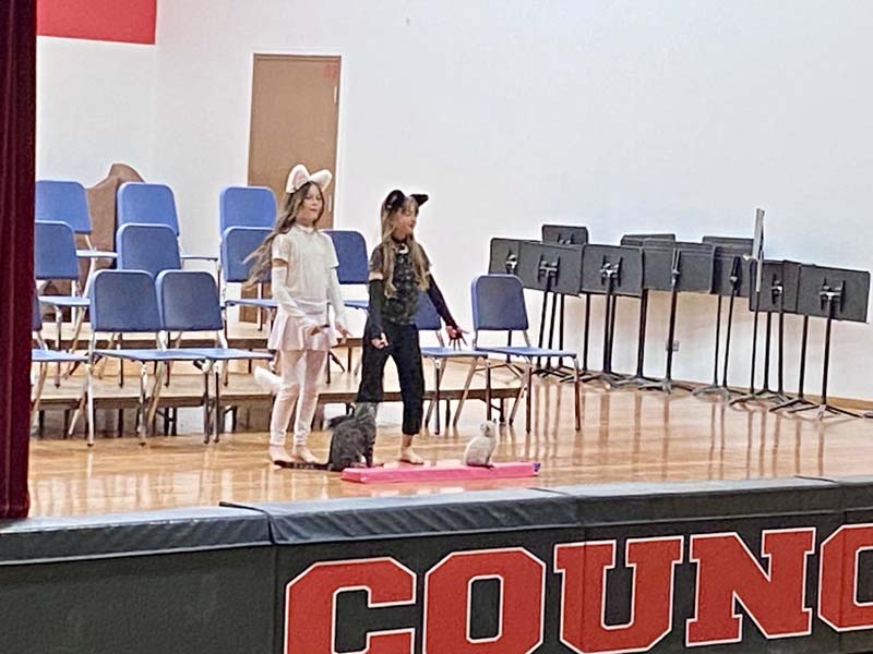Second place was a close second though, and was awarded to Emerald Hart and Evelynn Collings, who performed a dance to “The Cat Song” with the aid of Emerald’s cats, Journey and Selina. The two girls, who homeschool locally, both choreographed the dance themselves and trained the cats to do tricks during the number. The audience loved it, and the act was practically purrfect in every way!