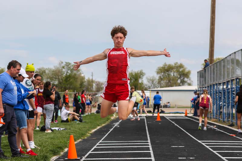Camden Roundtree earned 2nd place in the Long Jump with a distance of 19’ 10” and 5th place in the Triple Jump with a distance of 38’ 6”. Photo credit: Patty Guilford