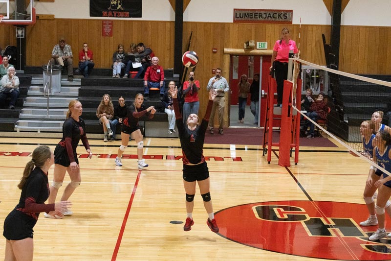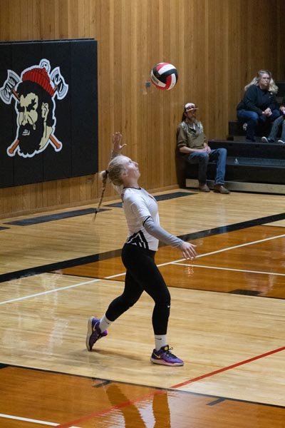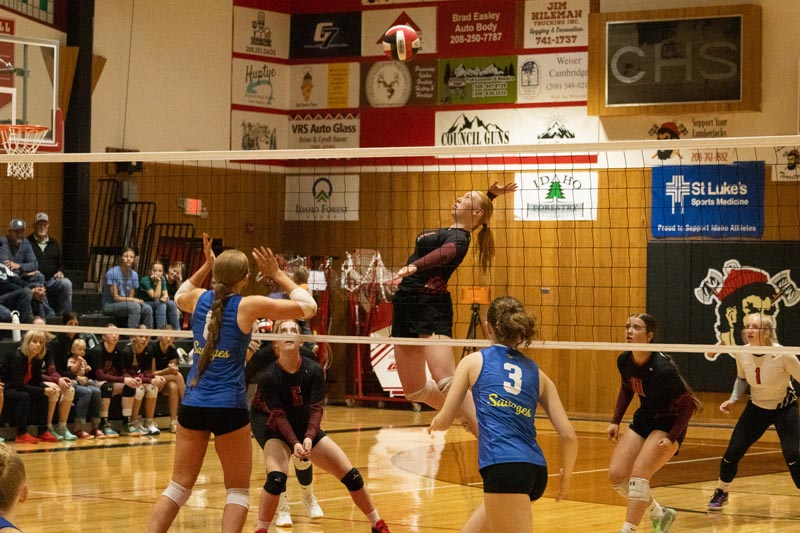 Junior Lilly Veselka goes up for a play against Salmon River on October 8. Council lost in three sets. Photo credit: Nate Estes