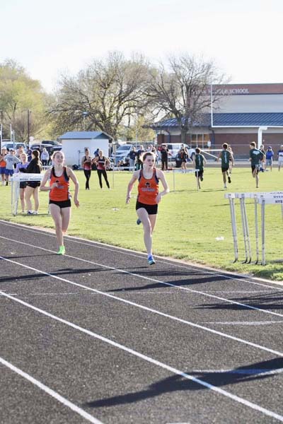 Emma (right) and Adelyn Barton running the 3000 meters. The sisters took 1st and 2nd. Photo credit: Abby Ochoa.