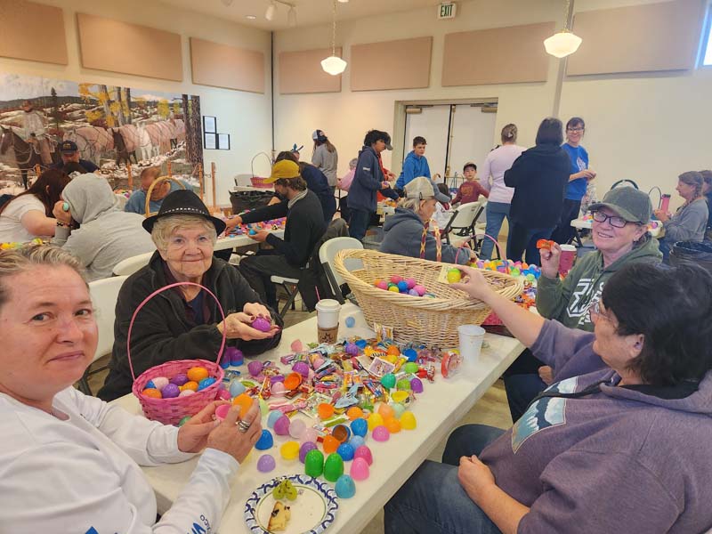 Around forty volunteers of all ages gathered at the Historic P. & I.N. Depot to stuff plastic eggs with candy for the upcoming New Meadows Easter Egg hunt this past Saturday, April 11. The City provided coffee and brunch fixings. Candy was provided by local community donations and a Meadows Valley School class competition to bring in the most wrapped candy. The candy from each class from preschool to 5th grade will go toward that grade’s hunt area at the city Easter Egg Hunt next Saturday, April 19 at 11:00 a.m. at the school.