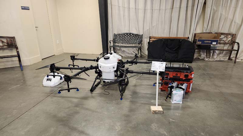 Royce Schwenkfelder, Mark Moura and Wyatt Moura were available to talk about their drone and the trailer that they built to use with their drone. They use their drone for spraying and seeding. The discussion went over the things that they have learned since purchasing their drone, including cost, licensure, and other things that go into owning and using a drone. One of the benefits of having their own drone is that they can plan things on their own schedule and not be waiting for a commercial sprayer to get them on their calendar.