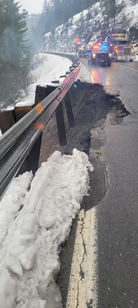 When asked how big the slide is the ITD representative said it’s ‘significant and definitely a safety concern’ which you can see in the photo. The chunk of road missing seems to be about 12’ long by about 2’ wide.