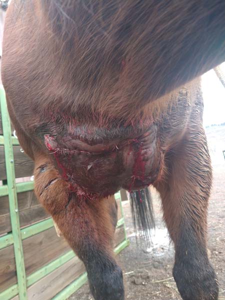 Bellin said she is incredibly grateful Council Veterinarian Bruce Gardner was able to come out and help Aubrey, who she said required many, many stitches and several hours of his time. Aubrey is recovering; she had a plate sized swipe of skin taken from her chest, and claw marks on her right foreleg, face and inside flank.