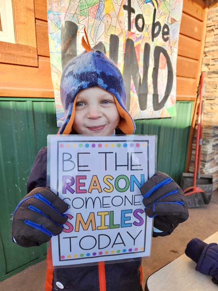 On Thursday, January 23 at the school’s celebration of learning night the students presented notes and pictures they colored and wrote as well as pictures from their free hot cocoa stand. Some of their notes included “kindness is helping my dad”, “kindness is helping people when they get hurt”, “helping friends with school”, and “helping my brother get his toys”. The class also surprised families attending the event with a song and poem. The students sang and played xylophones accompanied by music teacher Linda Kollman. The song lyrics say, “kindness is more than just being nice, it means doing good and self sacrifice / following always the golden rule, do unto others as you would have them do to you.” What a good encouragement for us all to heed.