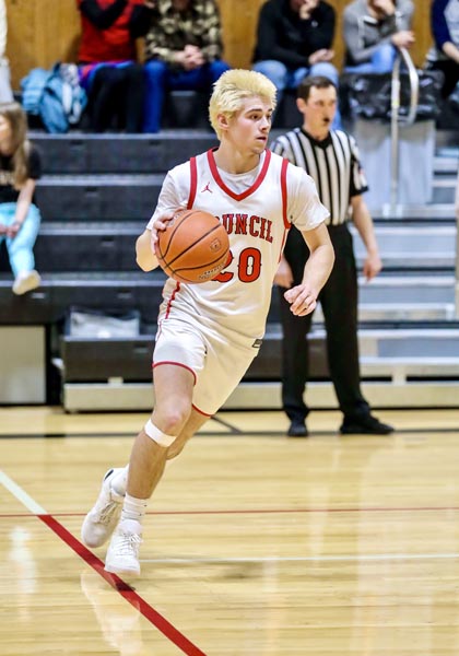 Senior Owen Hatfield during Monday’s game against Salmon River. Council won 48-41 and advances to the district championship game on February 23 against Garden Valley. Photo credit: Patty Guilford, www.gameframephoto.com