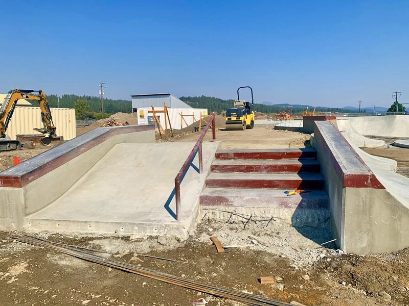 Mehen Memorial Skatepark in New Meadows is emerging quickly and currently plans to open with a ribbon cutting and skate competition on Saturday, September 27. The project, begun by New Meadows residents Rory & Sara Mehen, continues as a legacy to their memory and vision after the couple was tragically murdered in 2022.