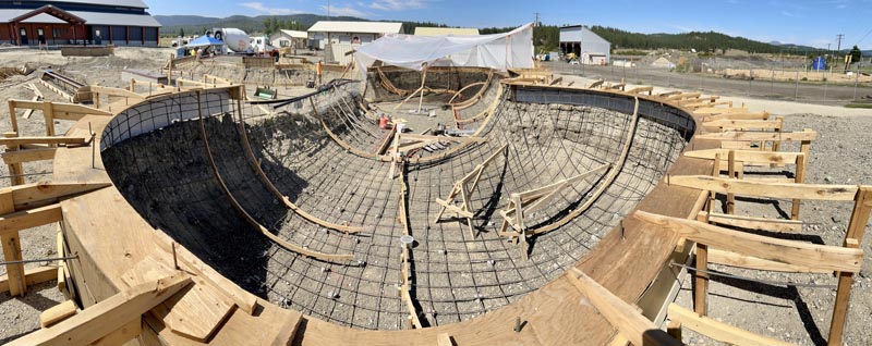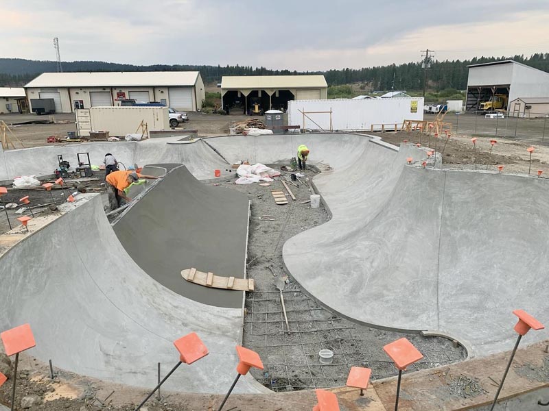 Grindline Skateparks, a full service design & build company specializing in skateparks, was hired by the New Meadows Skatepark. They held community meetings to gather feedback and requests and designed a park reflecting the community input, unique aspects of New Meadows, as well as the important and memorial history behind the park’s planning. Over the summer, frames were built to form the outline of the skatepark. In the last month, concrete was sprayed and shaped. Contractors are continuing to smooth and perfect the park design and install finishing touches including stairs and rails forming a world class skatepark.