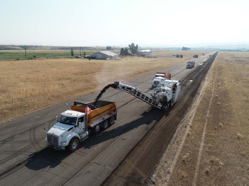 Thanks to a $570,000 grant from the Idaho Division of Aeronautics the runway at the Lee Williams Memorial Airport in Midvale is removing it’s old asphalt layer. The city is paying an additional $66,000 from it’s airport fund. Crews from Idaho Materials & Construction began removing the old asphalt July 10.