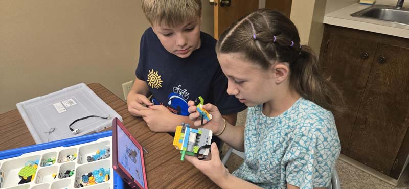 The Midvale Community Library recently partnered with Holi Ogle with the U of I Extension Office. Holi came with iPads and Legos and instructed the kids in creating and programming a moon explorer and a speed racer. Holi even came prepared for younger siblings and had legos for them to build with.