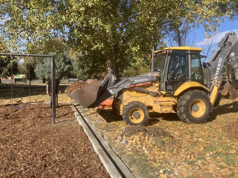 Just in time for Midvale’s Fall Festival last month, Scooter Vogel and crew Kevin Fry and Nick Nelson successfully completed the recent Midvale Community Playground upgrades: pouring cement curbing around the perimeter, placing heavy duty rubber mats under the swings and slide landings and topping off the mulch.