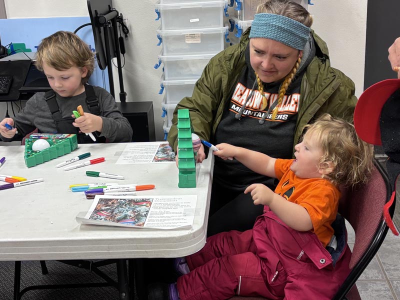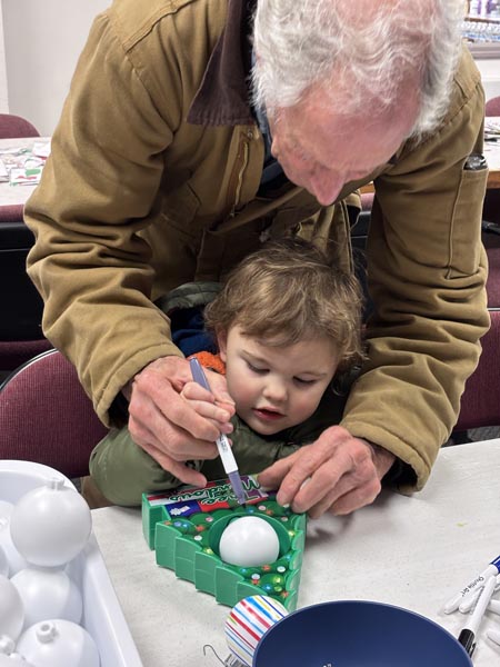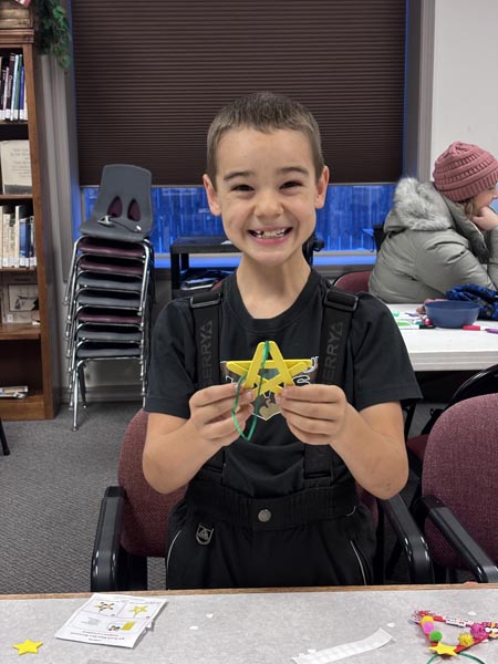 Event activities kicked off at the library with ornament making, photo opportunities, and treats. Kids and adults put together wooden stick ornaments decorated like elves, penguins, Santas, and reindeer as well as using the “Treemendous Ornament Decorator” to make spin art bulbs.