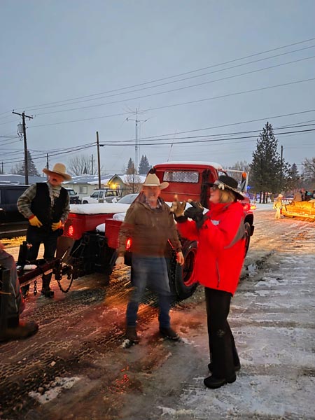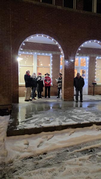 From the library, two flat bed trailers provided by Dean and Sandy Dryden and Mike Glick took everyone on a hay ride around the north end of town and over to the park. Kids ran across the park tossing snow balls and a countdown led to cheers as the lights went on. A tunnel of lights with a view of the city tree was a top spot for family photos. Music cheered the crowd outside.