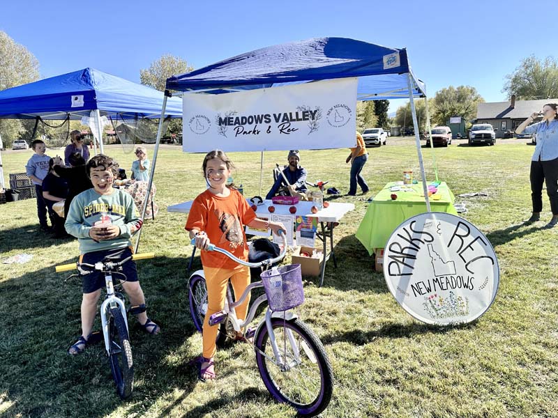 Live music and the scent of tacos wafted from the New Meadows City Park on Saturday, October 5. Mountain Roots Orchard set up their hand powered apple press for people to try making apple cider. About 14 tents were set in a circle offering baked goods, local produce, handcrafted items, books, and plenty of fun for the kids. Many booths offered activities for kids to earn tickets and a store was set up with small toys, trinkets, and useful items to be traded with the tickets. Corn hole, horseshoes, a duck pond, free face painting, and crafts all offered even more fun.