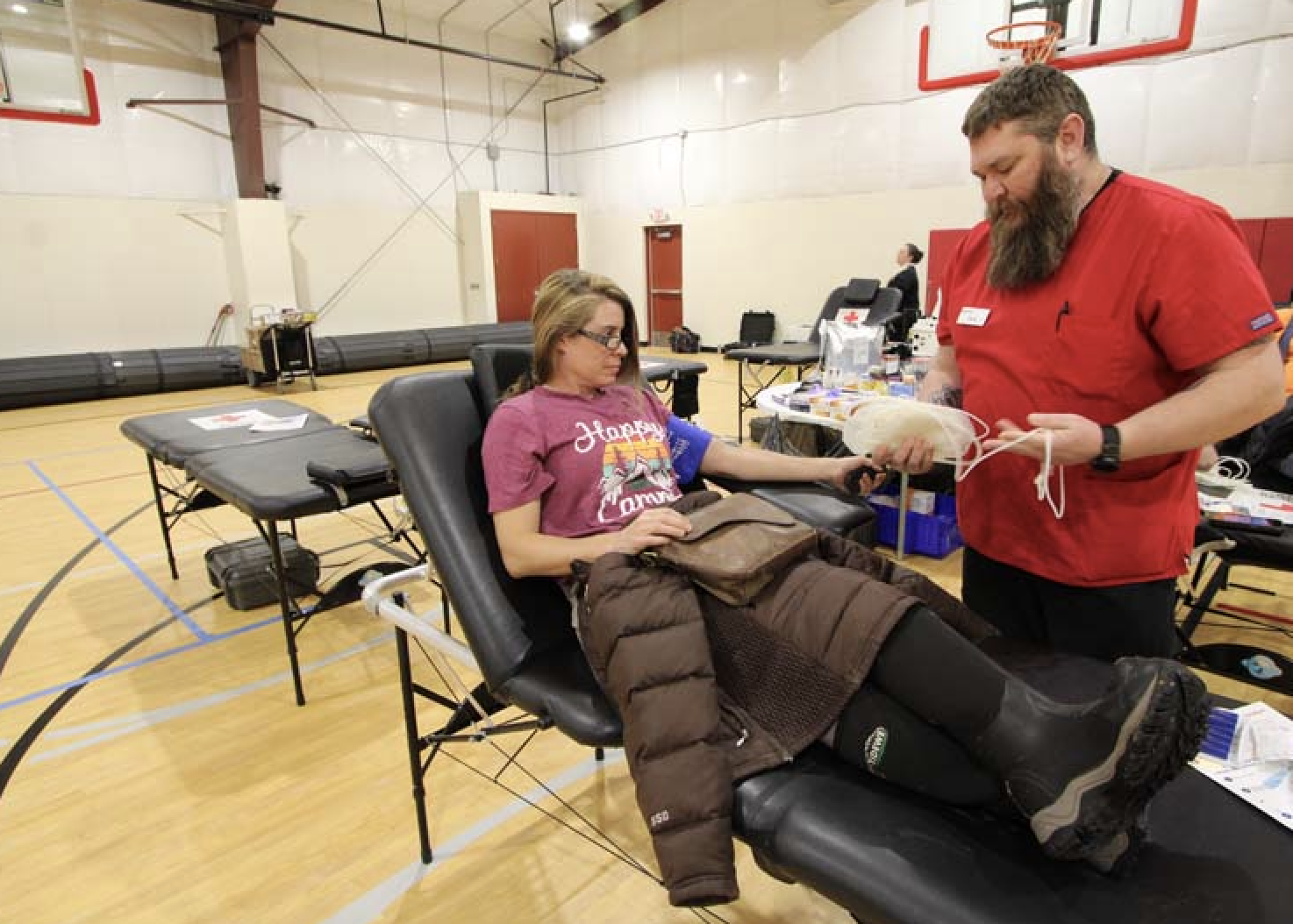 I spoke with Christy Behm out of New Meadows who was donating that day. She told me she has donated three gallons over the course of her ‘career’. She also showed me a Red Cross app on her phone that showed her where her blood had traveled to help save lives. Her’s had gone to Utah, Nevada and California.