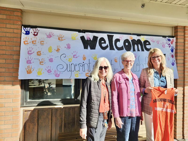Idaho’s State Superintendent of Public Instruction Debbie Critchfield visited Meadows Valley School on Wednesday, September 24. She was greeted with a poster of hand-prints and signatures from students.