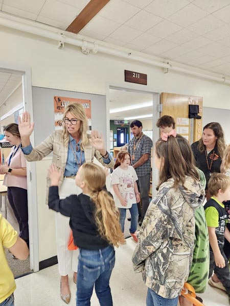 As students returned to class, they gave high fives to the superintendent. Critchfield spent a few minutes hearing from two elementary teachers about their experience, what they thought about cursive in the classroom, and what challenges their students are facing. One teacher said their students love being able to sign their name in cursive and all talked about the studied benefits of cursive and the potential help for those with dyslexia.
