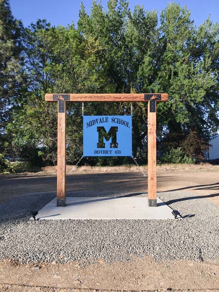At the entrance to the school is a new metal sign designed by Lexi Gay and completed by the shop class.