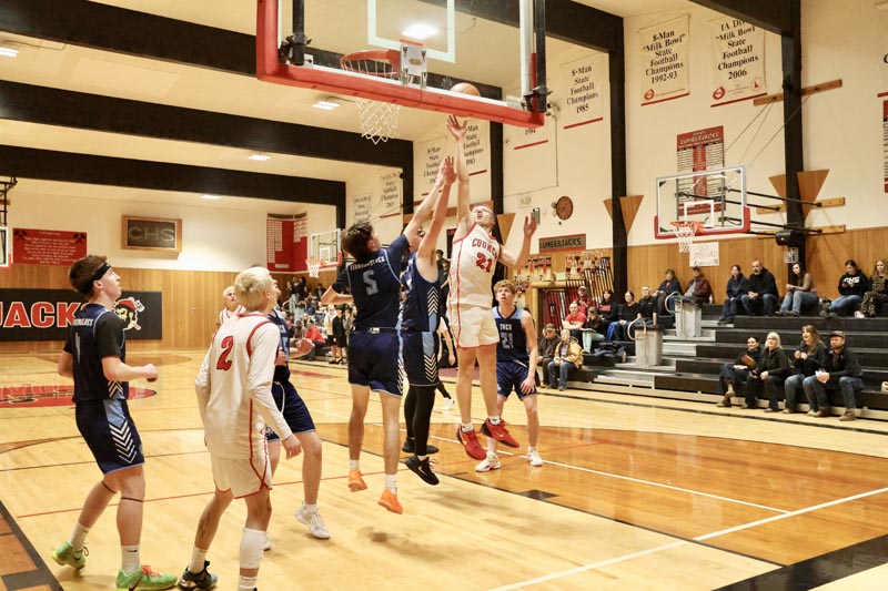 Meadows Valley and Tri-Valley Junior High teams meet in Midvale on February 5. Photo credit: Rachel Reynaga