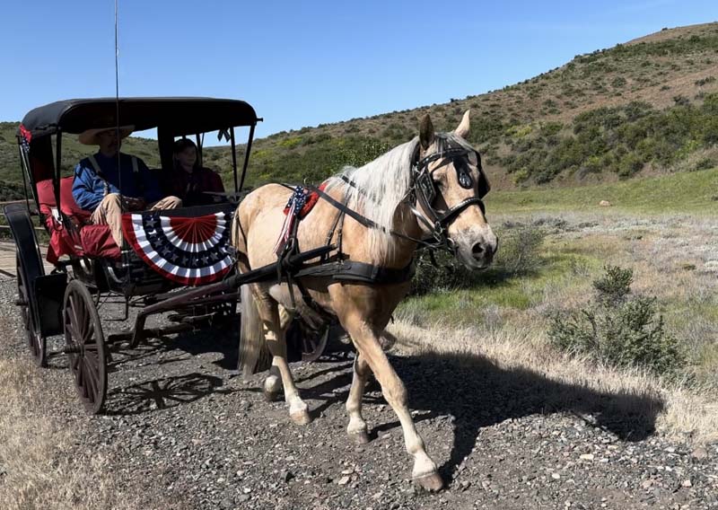This year there were three wagons. Two of the wagons carried three people and one wagon one person; the other participants all rode horses. This year a participant flew in from Virginia, another from New York, and a large group of people from the Portland area came for the event.