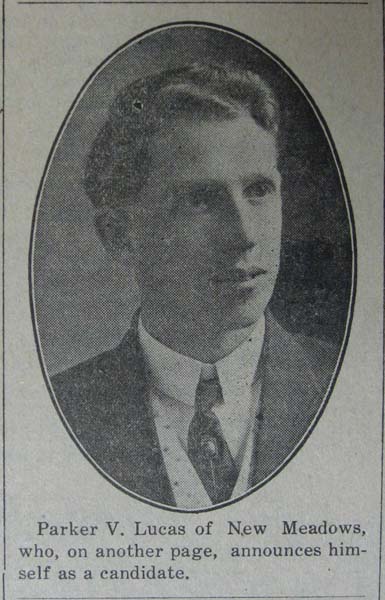 Parker Vincent Lucas 1888 – 1940 who was manager of the Lucas Land Company and was quite politically active. He was also a bank cashier (like his father) at least in 1908, at Roseberry (the town 1 mile east of present-day Donnelly before the railroad killed Roseberry by creating Donnelly).