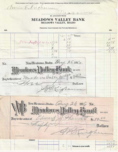 The two banks competed for a while, but New Meadows was likely too small to support both. In 1916 the two banks merged under the name Meadows Valley Bank in the brick building mentioned above.