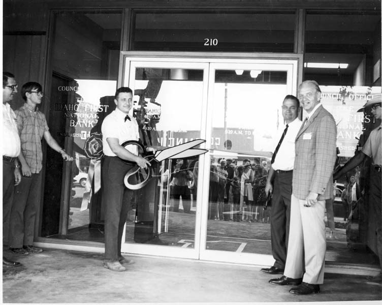 Adams County Leader, July 22, 1971: “The new Council office of the Idaho First National Bank will be opened for business on Friday, July 30, at their new location. The ribbon cutting ceremony is scheduled for 9:30 a.m., followed by an open house. C.W. Hilleboe, the president of the City Council, will cut the ribbon, assisted by Thomas C. Frye, President of the Idaho First National Bank, Don Menter, President of the Council Chamber of Commerce, and Ed Kesler, local branch manager.”