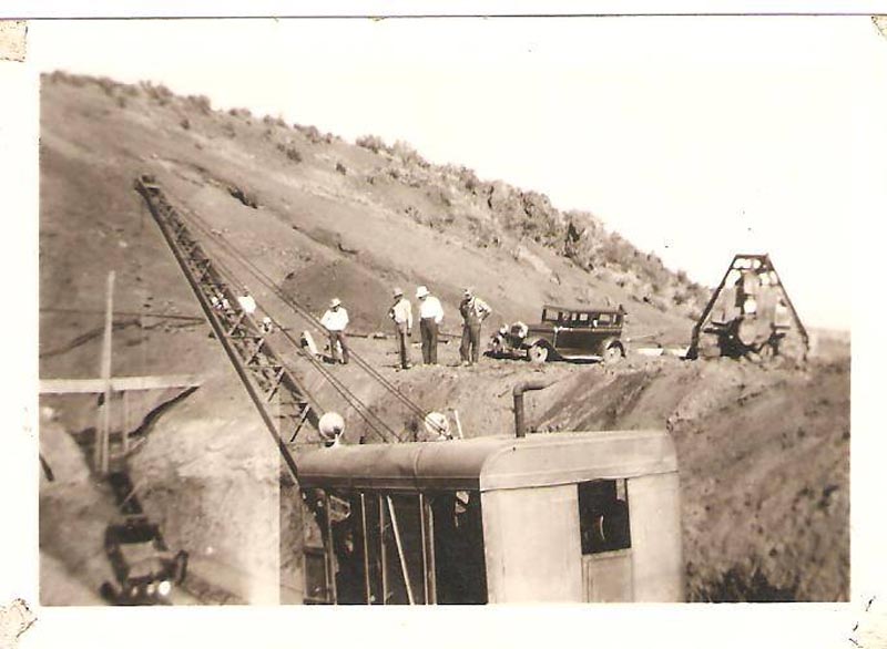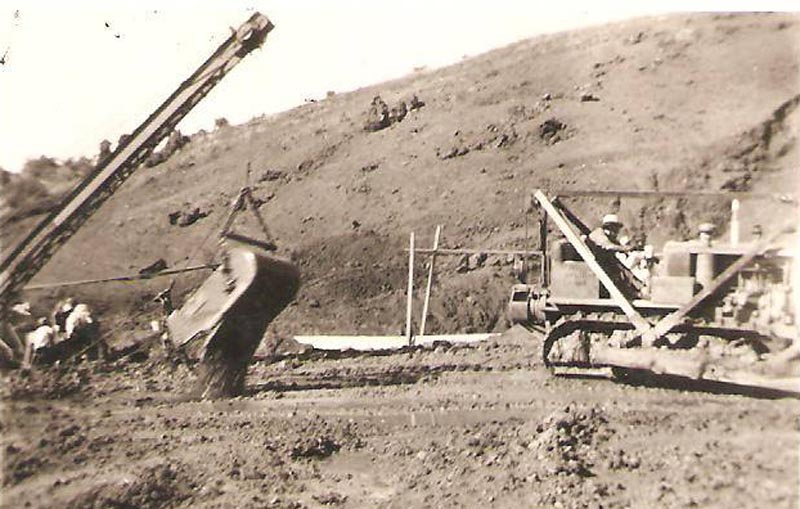 In October, Ellis Snow was concerned that the reservoir would not be completed in time to provide farmers with water the next summer (1937). He persuaded the state highway department to make their steam shovel available for the construction job. The additional big shovel sped up the work. The Leader said, “The outlet tunnel is progressing satisfactorily, forging through sold rock; now 150 feet with about 250 feet to go.”