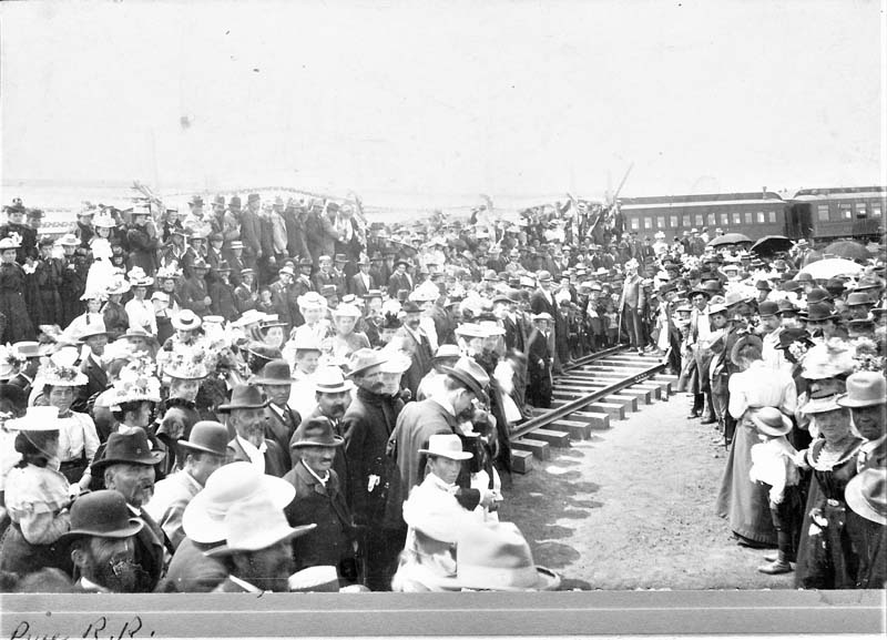 After some distance of grade was built on which to lay ties and rails, the first rail was laid on May 18, 1899. A huge crowd gathered at Weiser to watch Thomas Bates drive a spike made of Seven Devils copper. The crowd cheered, the band played, and long speeches were made proclaiming the wonderful future that would be assured by the railroad.