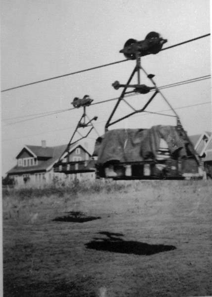 “While quite a tourist attraction, the tramway was an absolute necessity during those next few years. the roadway was almost impassable in the winter months when much of the fruit was shipped, even for the teams of horses and sleighs, and it was difficult to keep the fruit from freezing on the long haul to the siding. We could cover the tramway carriers with heavy water-proofed canvass which protected the boxes and baskets of fruit during the shorter trip from rain, cold, and sleet. Also the tramway could load cars at the siding twenty four hours a day without the resulting mix-up when one sleigh load of fruit would arrive out of sequence, and destined for a different car than the one being loaded.
